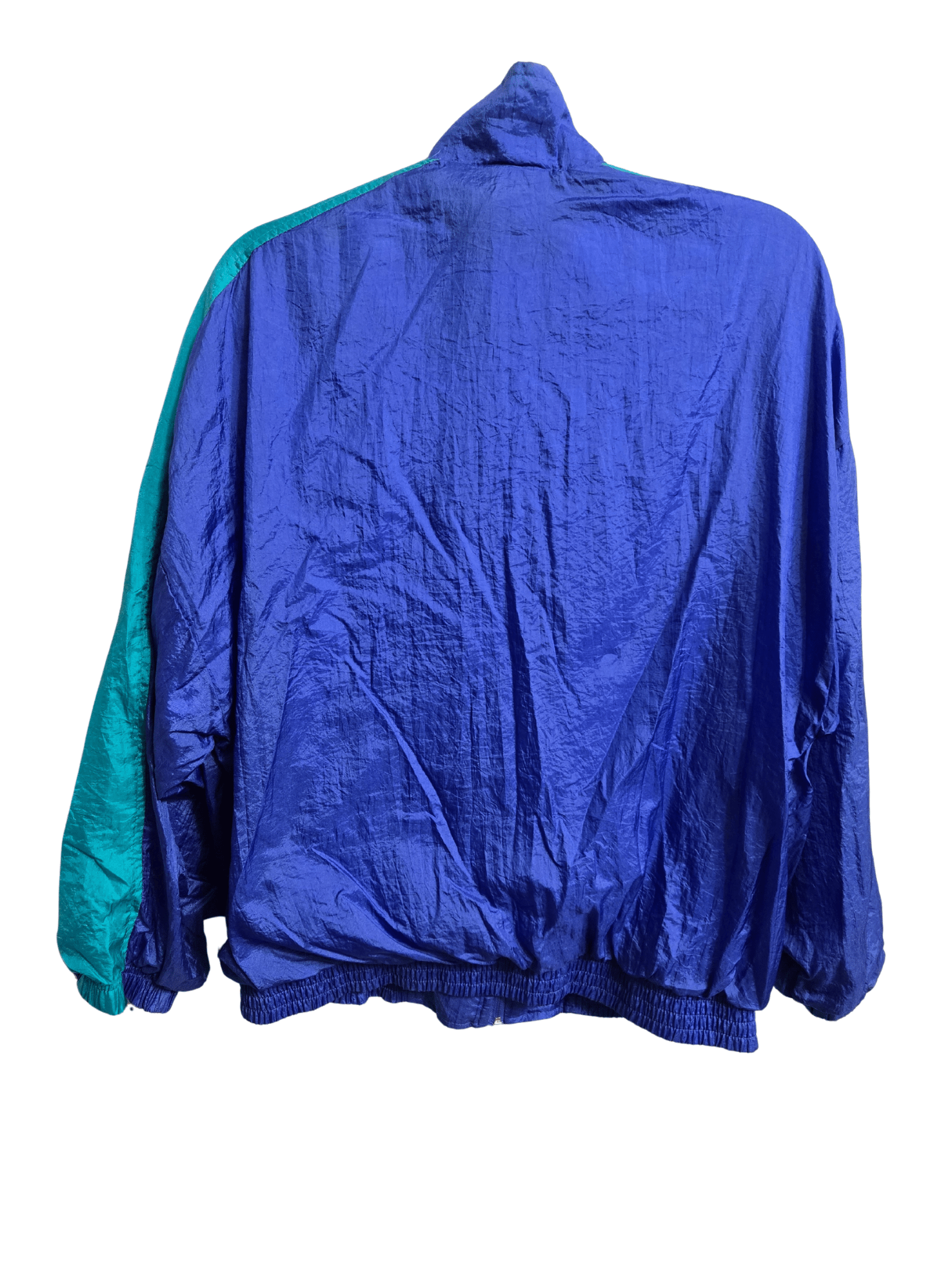 -Blue/Pink/White/Teal/Peach colors & design; zipper to secure; 2 pockets; lined on inside; elastic bottom and sleeve cuffs