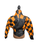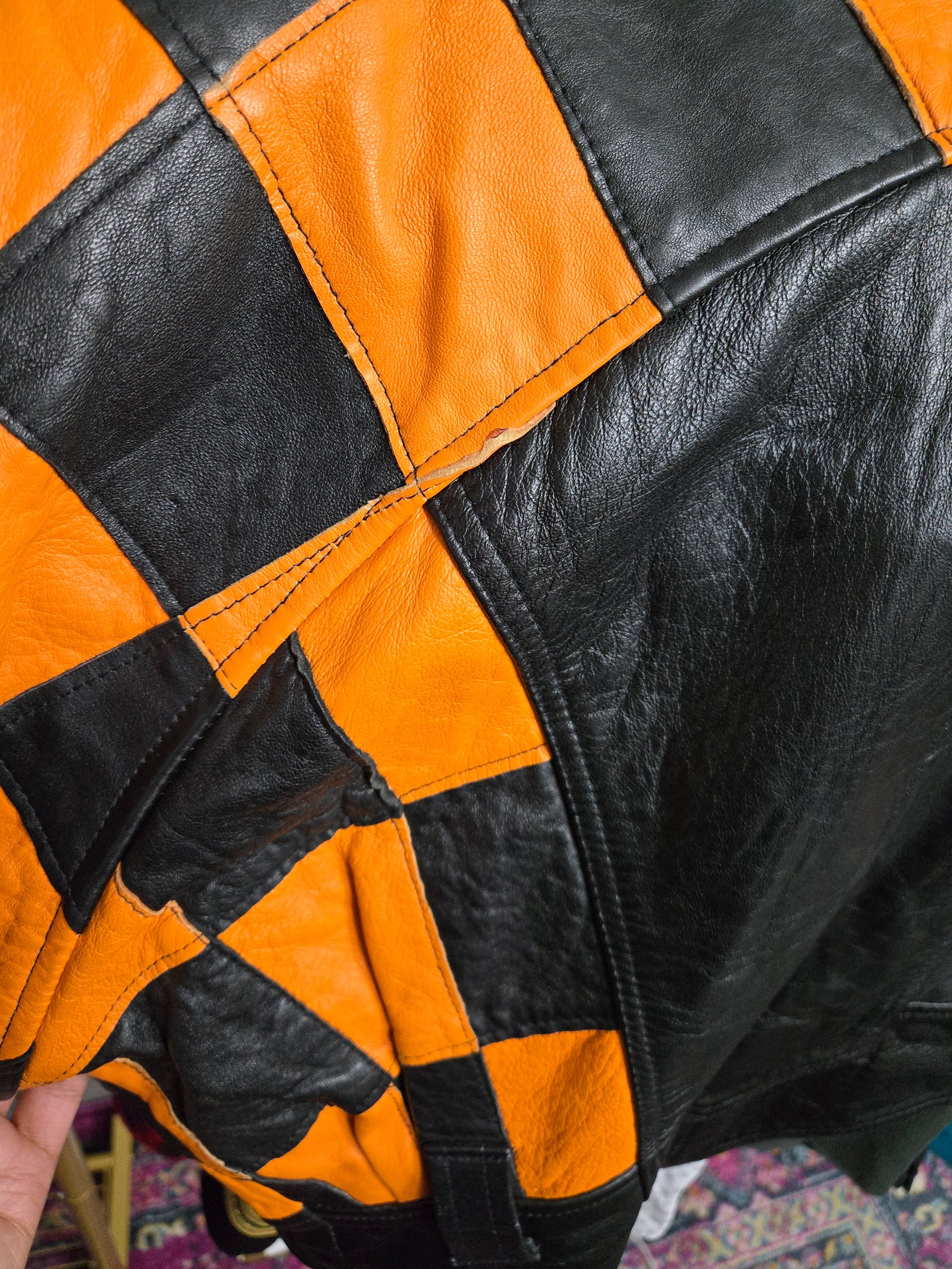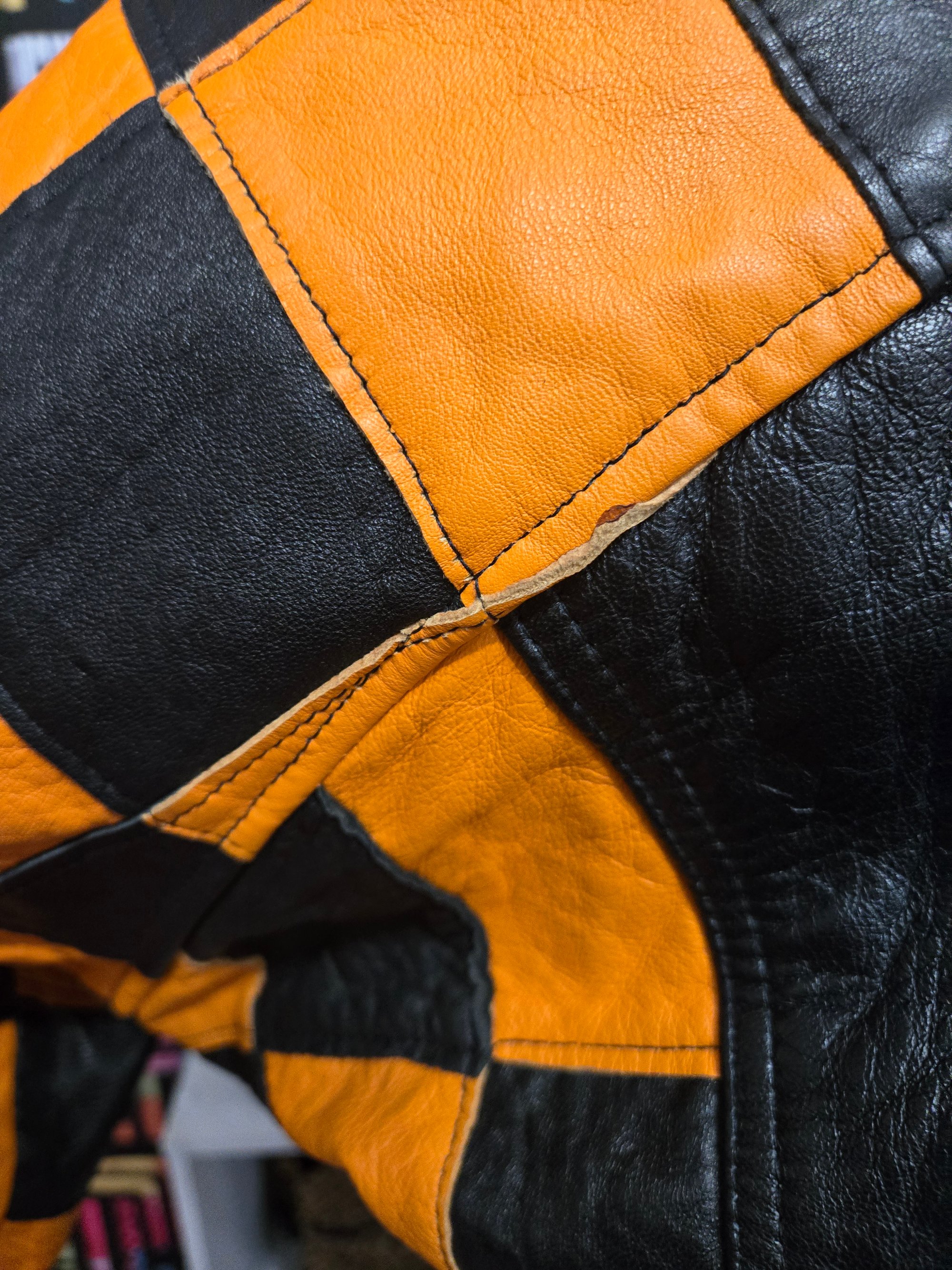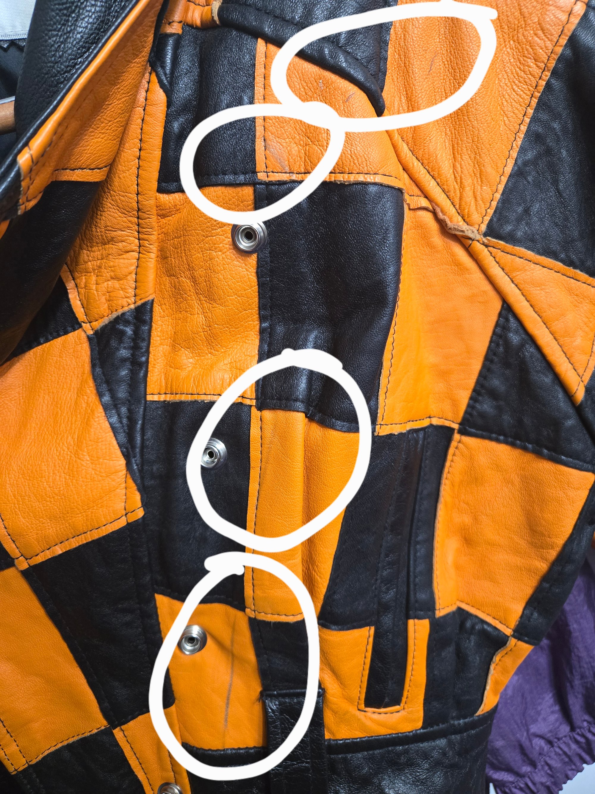 Has a a few marks and tan spots where the fabric has folded over pictured.No rips or holes and clean on the inside.